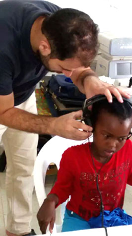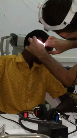 This is the first visit of an ENT in this region to check the hearing levels of the hearing impaired Keep the rest of the text under the last picture of the doctor