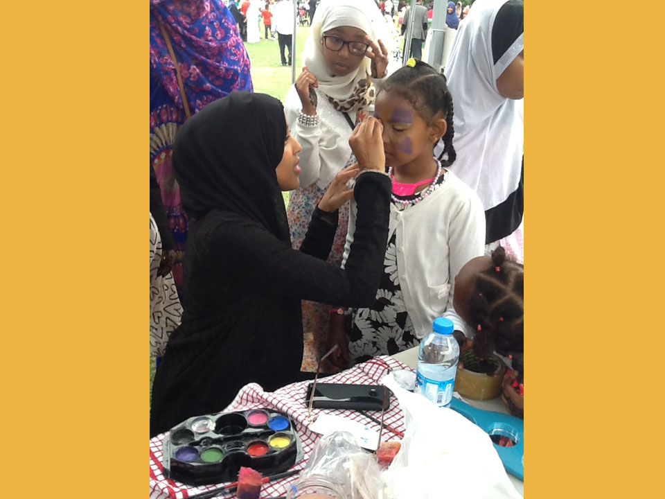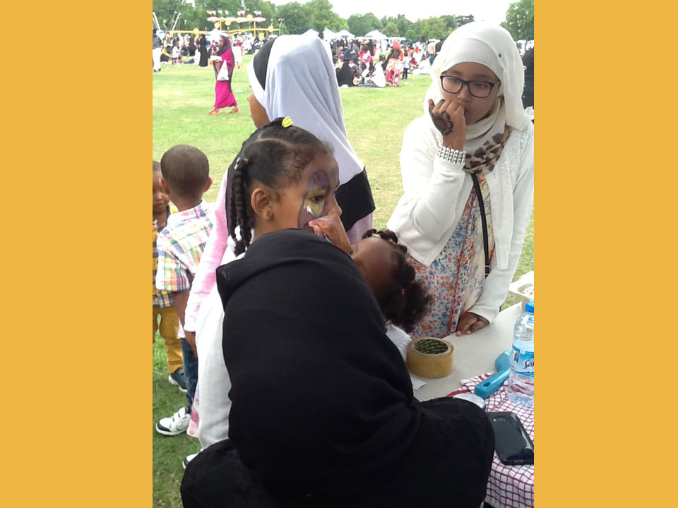 Somsimma takes part in yearly Community events. In 2015 Somsimma's first fundraising event took place at Ealing Common Park, UK launched by the Darussalam Mosque in Ealing. Our stall was a center of attraction for children and adults to show off their unique face paintings.